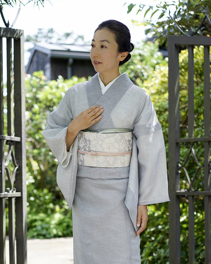 夏といえば麻の着物というイメージが強いですが、実は麻は繊維の構造上、保温性が高く、透け感がないと熱がこもりがちです。一方、絹は吸放湿性に優れ、肌にまとわりつかない軽やかさがあります。やまもと工藝では、絹が持つ本来の涼やかさと着心地の良さに着目。暑い夏でも快適に、美しく着られる「新しい夏のきもの」を提案いたします。