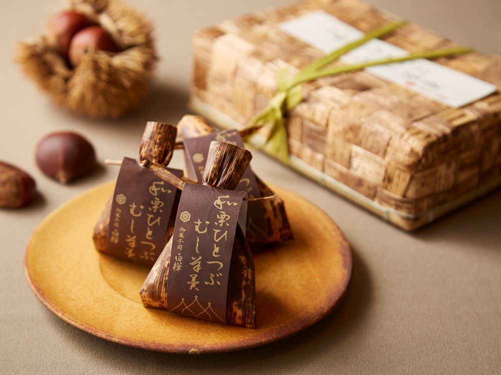 茨城県笠間産の栗をひとつぶ贅沢に使った白樺特性の「和栗ひとつぶむし羊羹」