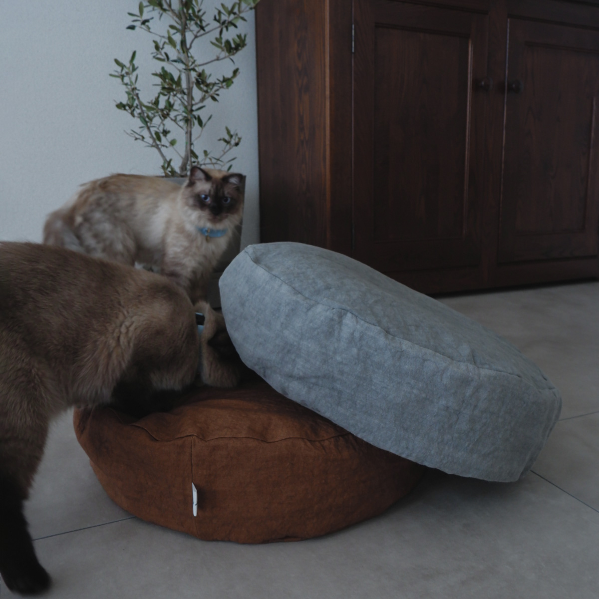■ Pouf Cat Bed カバー【炭染め × リネン和紙】