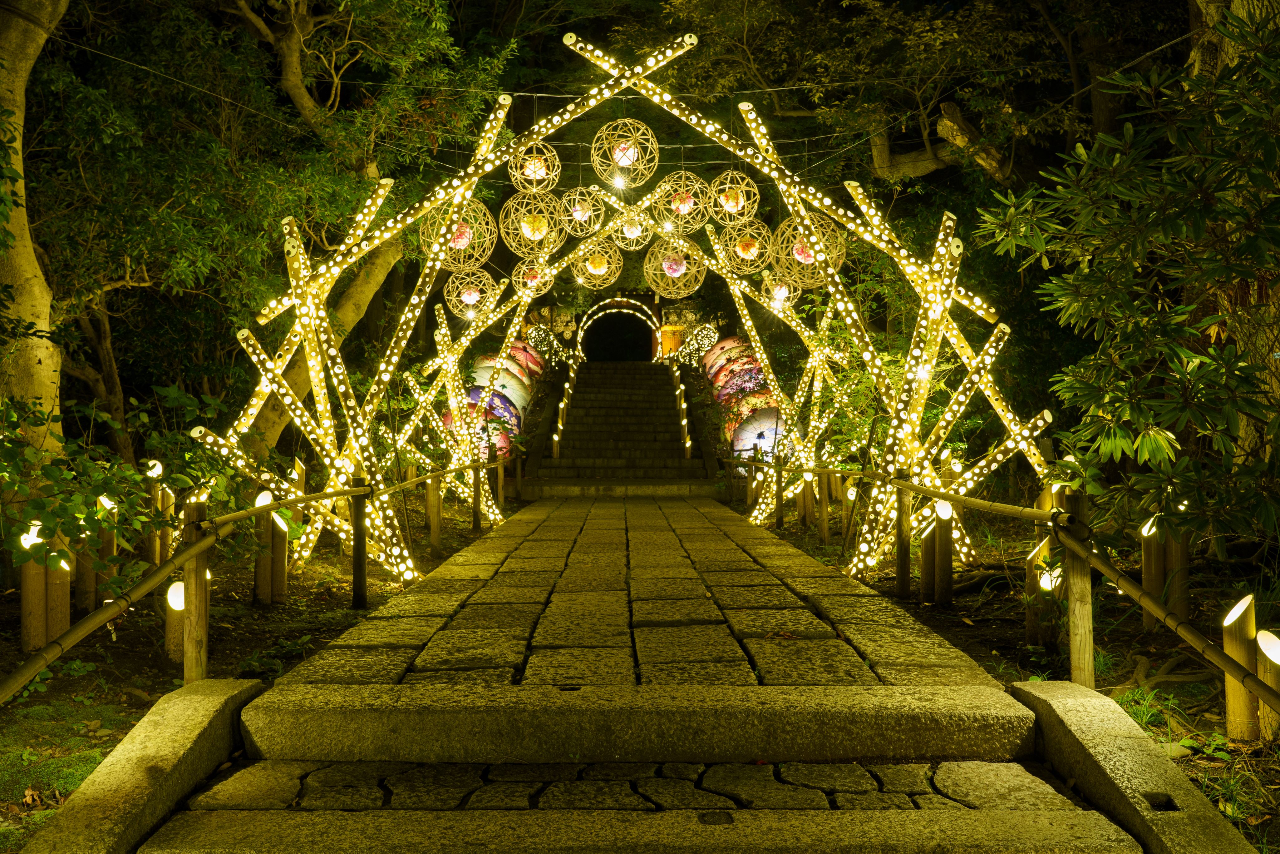 HANA・BIYORI入園(通常価格おとな800円)が無料となります。園内では季節のお花だけではなく、「妙見菩薩像」などの文化財や「花風鈴」の展示をご覧いただけます。また、16時からは和のイルミネーション「HANAあかり」も開催中です。
