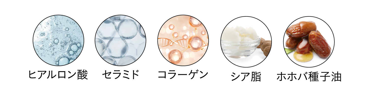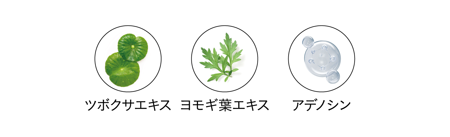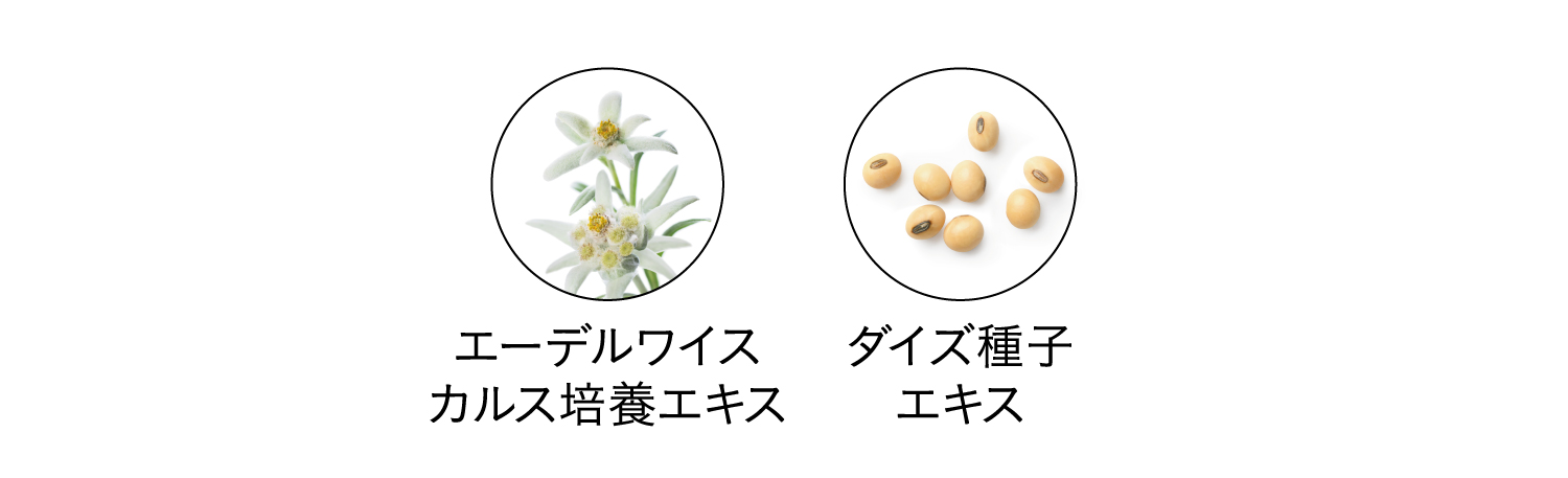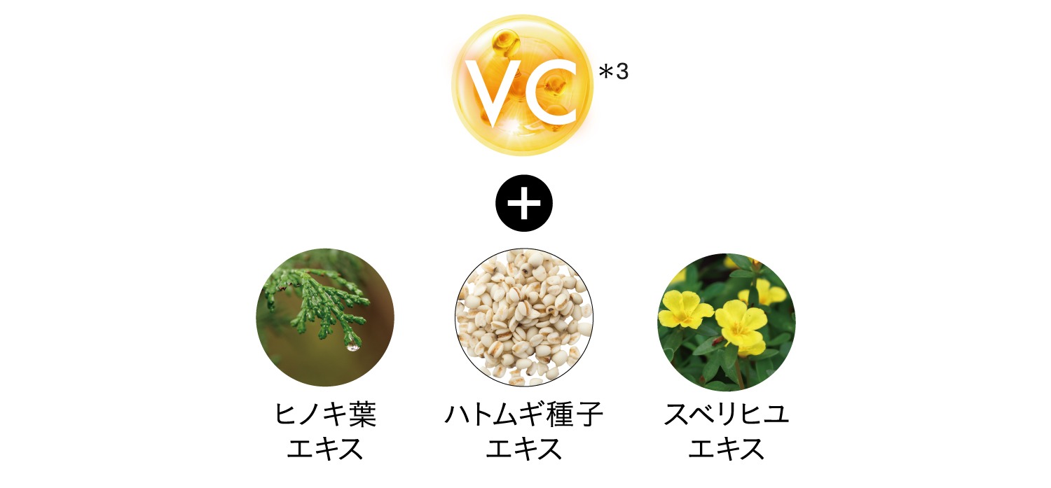 *1 角質層まで *2 NMF構造成分(保湿成分):プロリン、アスパラギン酸、トレオニン、セリン、グルタミン酸、グリシン、アラニン、バリン、メチオニン、イソロイシン、ロイシン、チロシン、フェニルアラニン、リシン、ヒスチジン、アルギニン *3 保湿成分:アスコルビン酸 *4 肌の保護 *5 保湿成分:グリコール酸、トコフェロール、ハナハッカ葉エキス、ヒノキ葉エキス、乳酸桿菌/ダイズ発酵エキス、カシア樹皮エキス、オウゴン根エキス、スベリヒユエキス、ハトムギ種子エキス *6 保湿成分:アラントイン、ナイアシンアミド、酢酸トコフェロール、ヒアルロン酸Na、セラミドNP、加水分解コラーゲン、シア脂、ホホバ種子油、スクワラン、プロリン、アスパラギン酸、トレオニン、セリン、グルタミン酸、グリシン、アラニン、バリン、メチオニン、イソロイシン、ロイシン、チロシン、フェニルアラニン、リシン、ヒスチジン、アルギニン *7 ハリを与えること *8 保湿成分:イソステアリン酸ソルビタン、パルミチン酸エチルヘキシル、パルミトイルトリペプチド-1、ダイズ種子エキス、トリ(カプリル酸/カプリン酸)グリセリル、エーデルワイスカルス培養エキス *9 保湿成分: アデノシン、ツボクサエキス、ヨモギ葉エキス、加水分解エラスチン、フィトスフィンゴシン