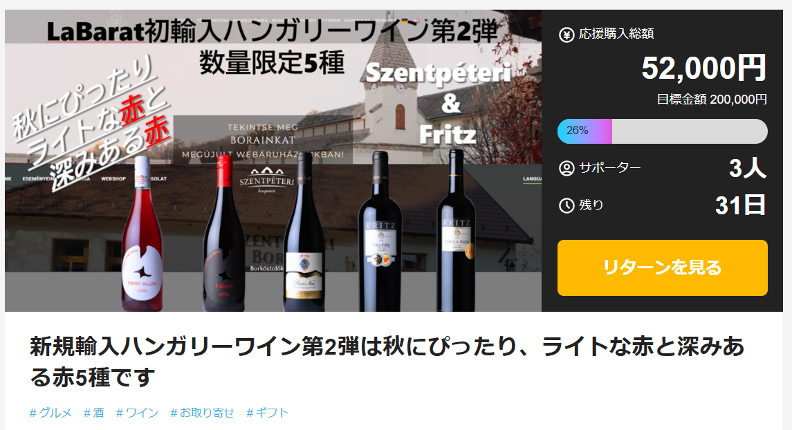 新規輸入ハンガリーワイン第2弾プロジェクト、マクアケで公開