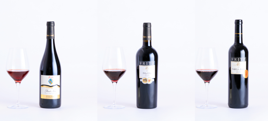 そして、メルローの魔術師・Fritzワイナリーからはピノノワール100%の赤とメルロとカベルネフラン50%ずつの赤、そしてメルロ、カベルネソービニヨン、ケークフランコシュ、ピノノワール4種ブレンドの赤です(写真の3本です)。