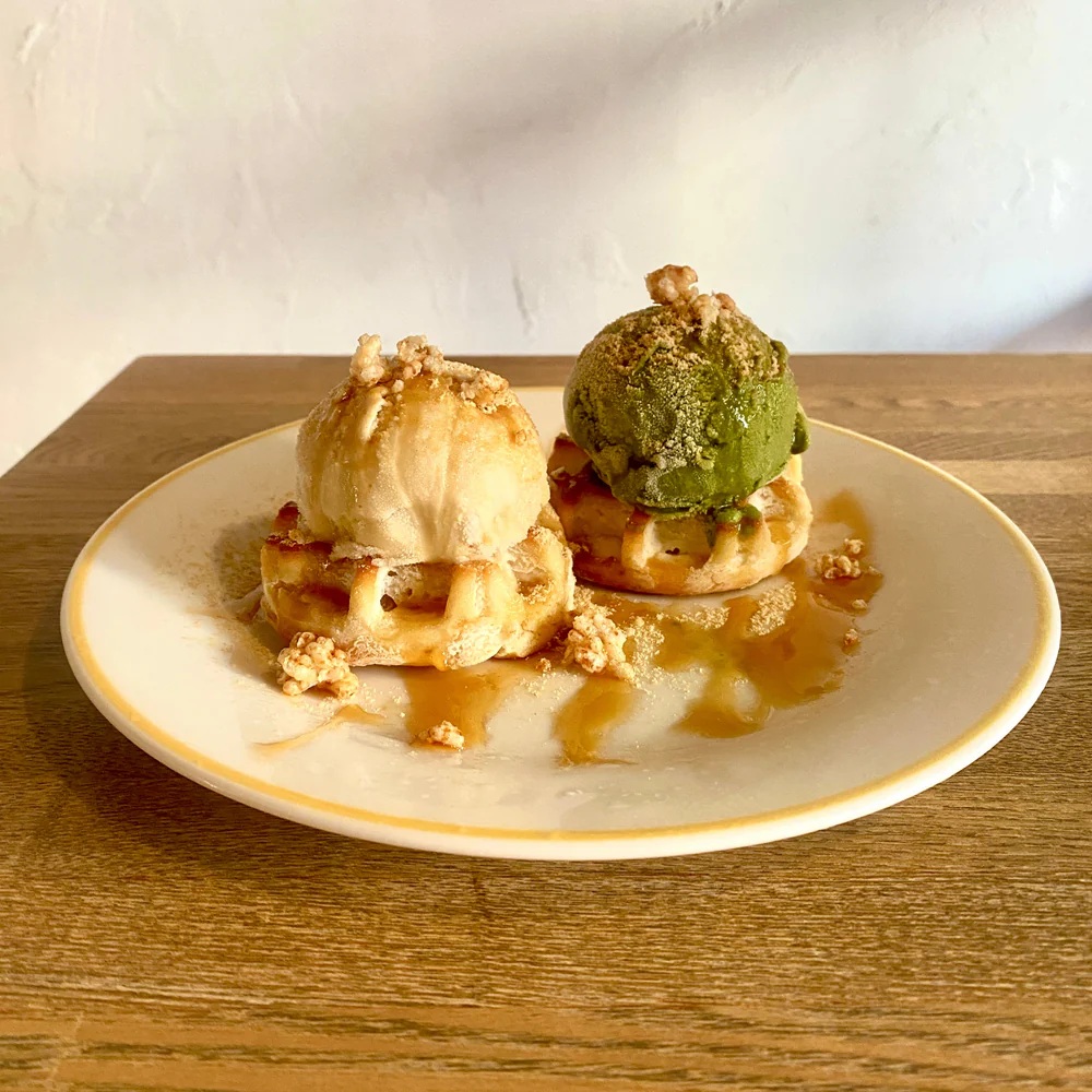 NINZIAの蒟蒻食物繊維を使用した「グルテンフリーワッフル」がお米の植物性アイスクリーム「The Rice Creamery」とコラボ。~50セット限定で販売開始~