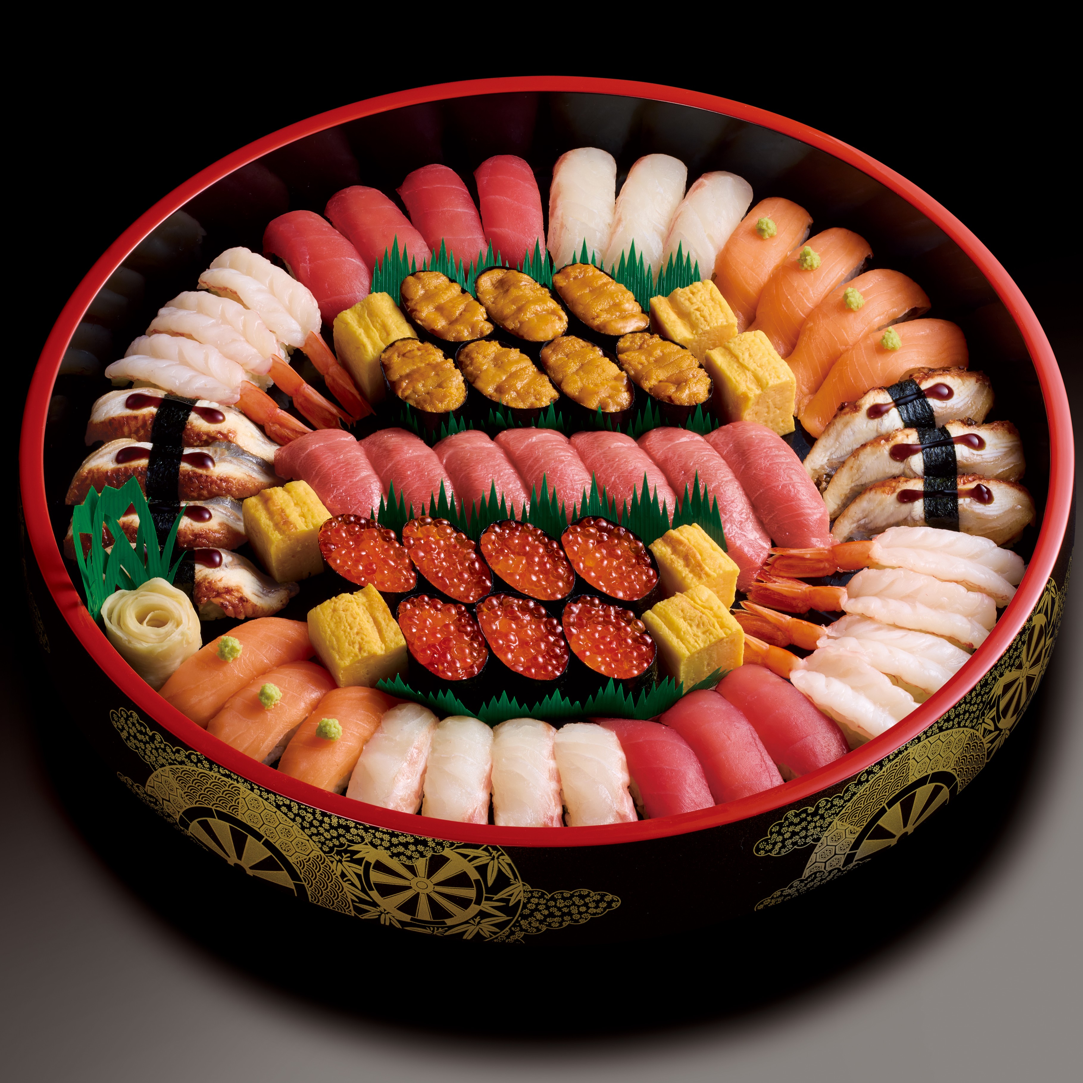 それを総貫数が32貫(4人前)・56貫(7人前)に盛り合わせ、それぞれ3~4人・5~7人で楽しめる商品にしました。