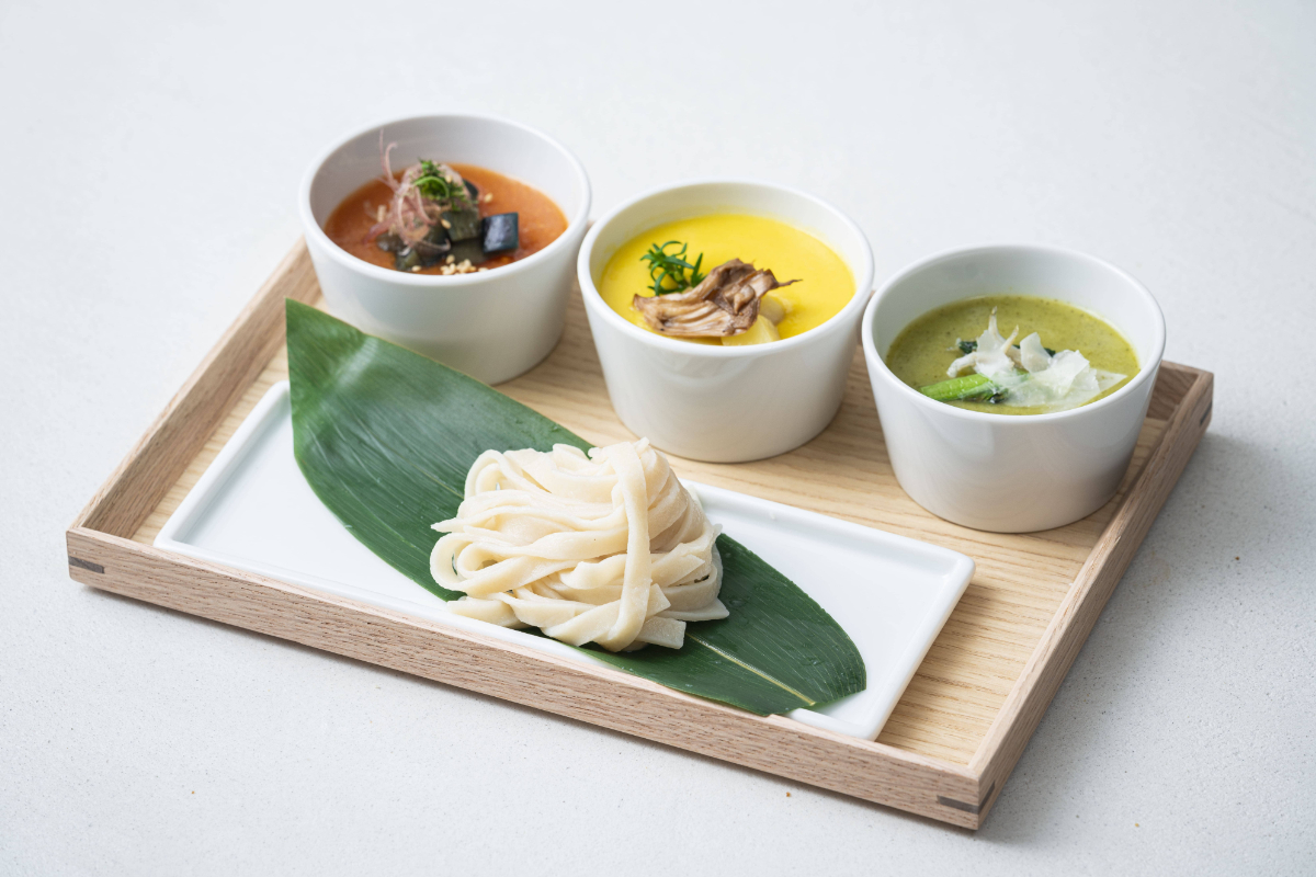 ⽇本料理の椀ものの⼀つである「すりながし」を現代⾵にアレンジ。旬の野菜や⾖をすりつぶし、出汁でのばして、⾝体に優しい⼀杯に仕上げました。不⾜しがちなビタミンやミネラルを⼿軽に補うことができます。