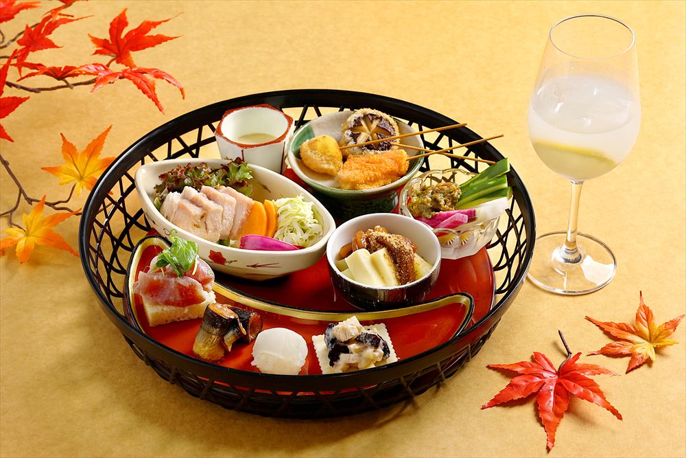 盛り込む8品は、魚腸(ワタ)干ししたサンマの醤油麹焼きや塩麹漬けにしたブランド豚を低温調理して焼き上げた一品、麦味噌とヨーグルトのソースで楽しむ串揚げ(秋サケ、栗、キノコ)、レーズンと酒粕とチーズのあえ物などで、腸のために一手間かけた“腸活御膳”を秋の夜長にお楽しみいただきます。