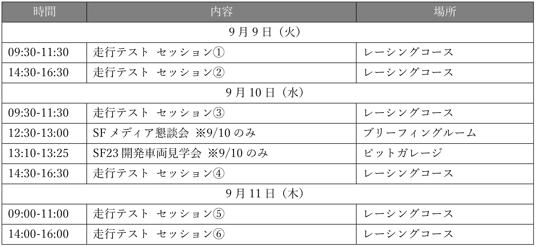 ※ 9/10のみメディア懇談会及び⾞両⾒学会を開催いたします