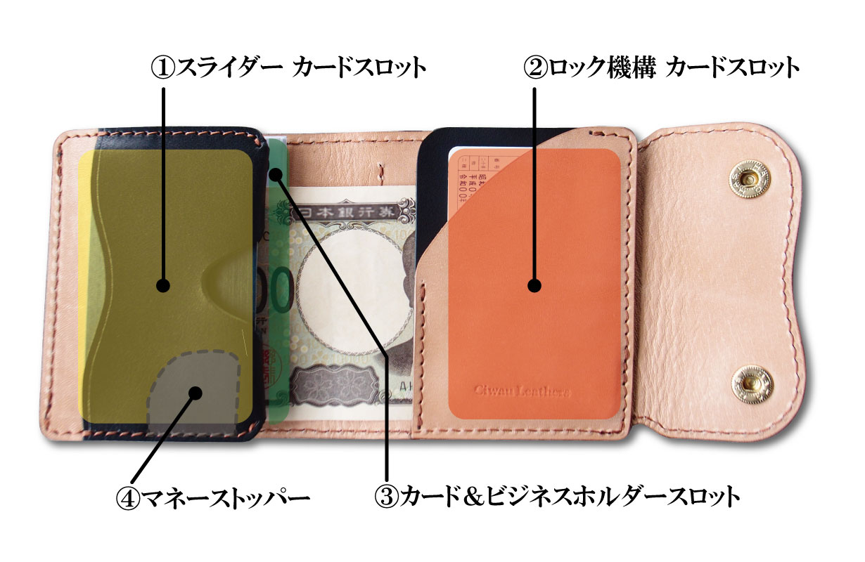 ワンタッチでカードを取りだせるカードホルダーや、出番の少ないが必ず携帯したい運転免許証や保健所、マイナンバーカードなどを収納する「ロック付カードホルダー」、またビジネスチャンスを逃さない「名刺ホルダー」等、日常で活躍、重宝する収納ホルダーをデザインしました。