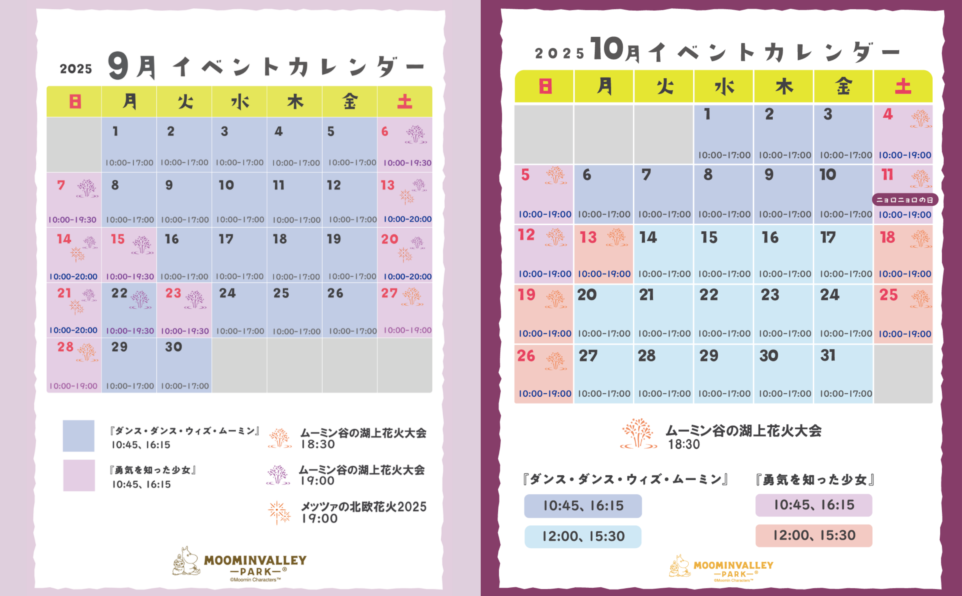 ※少雨決行、強風荒天中止。中止情報についてはムーミンバレーパーク公式サイト、SNS 等でお知らせいたします。また予告なく打ち上げ時間を変更する場合もございます。