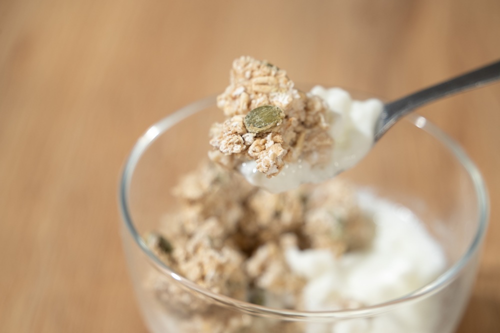 ビタミン・ミネラル・食物繊維を豊富に含み、朝食にぴったりの一品です。一般的なグラノーラに使用される水飴やチョコではなく、こんにゃくを使って固めているため、1食分でレタス1個分に相当する豊富な食物繊維を含んでいます。また、しっかりとした粒感にもこだわり、ミルクやヨーグルトと合わせても食べ応えのある食感を楽しむことができます。健康的でアレンジの幅が広がる新しい朝食体験をお届けします。