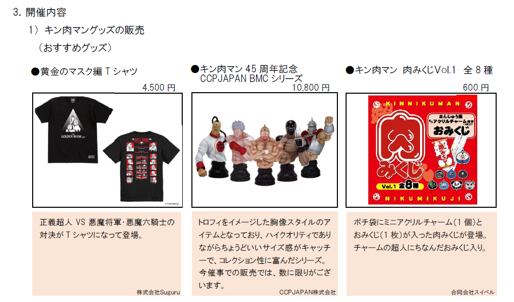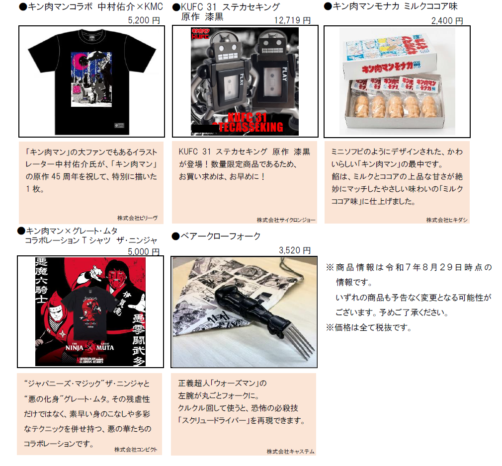 昨年に引き続いての開催となる今回は、Tシャツや雑貨、フィギュアなどを多数取り揃えるほか、昨年好評を得たキン肉マンフェア限定のオリジナルのTシャツ・クリアファイル(2025Ver.)に加え、新たにオリジナルトートバックを数量限定で販売します。