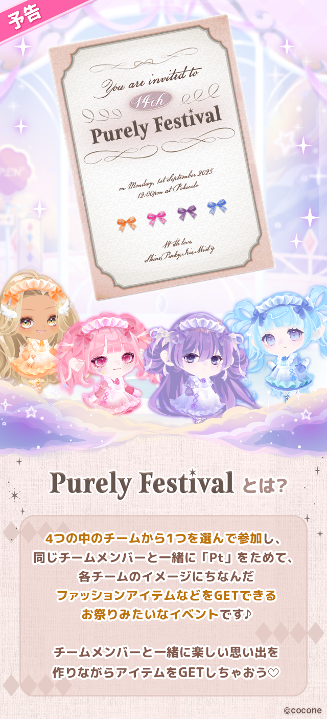 14周年記念イベント「14th Purely Festival」で交流を楽しみながらアイテムをゲットしよう!