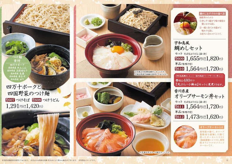 今回のフェアでは、四国ならではのこだわりの食材を使用したメニューを、おそばと一緒にお楽しみいただけます。淡泊で上品な味わいの「愛媛県産鱧(はも)」、旨みが凝縮された「香川県産オリーブサーモン」、ぷりっとした食感の「高知県産鯛(たい)」など海の幸に加えて、ほっこりとした甘みが特長の四国スイーツ「金時芋棒(きんときいもぼう)」など、四国各地の魅力あふれる“うまいもん”を取りそろえました。家族亭ではご来店のお客様に、まるで四国を周遊するかのような食の旅を楽しんでいただけるよう、山の幸と海の幸を楽しめるよう工夫を凝らしました。実りの秋にぴったりのメニューを、この機会にご家族やご友人とともにぜひご賞味ください。