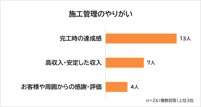 また「手に職をつけたい(4人)」という声もあり、将来的な安定や専門性を求めて施工管理を選ぶ人もいました。