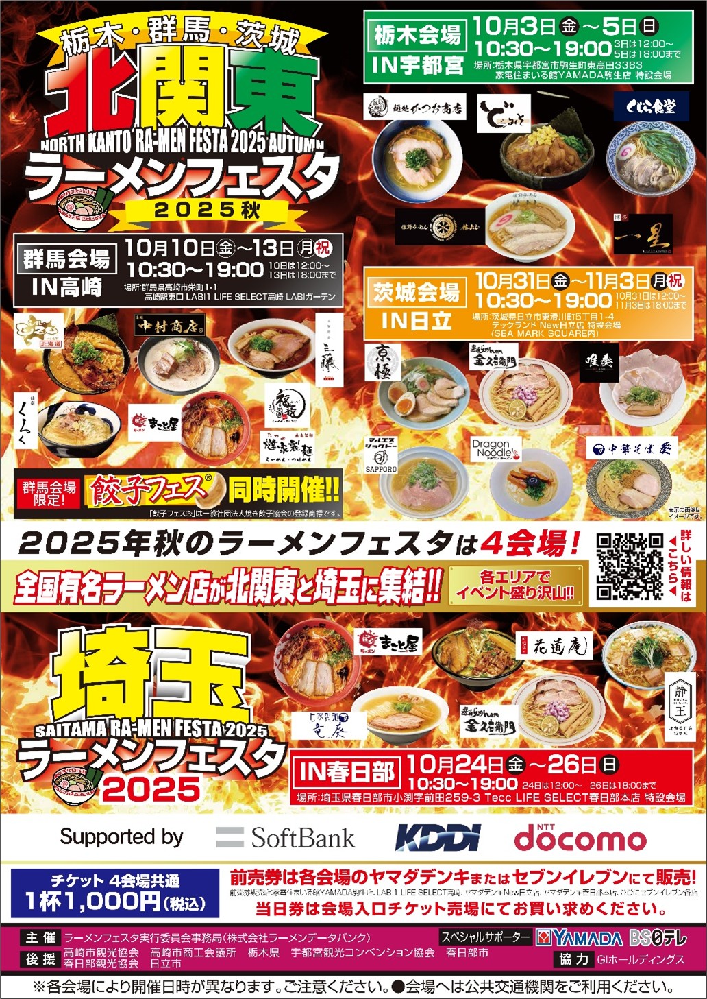 「北関東+埼玉ラーメンフェスタ 2025秋」栃木・群馬・茨城・埼玉の4会場で開催