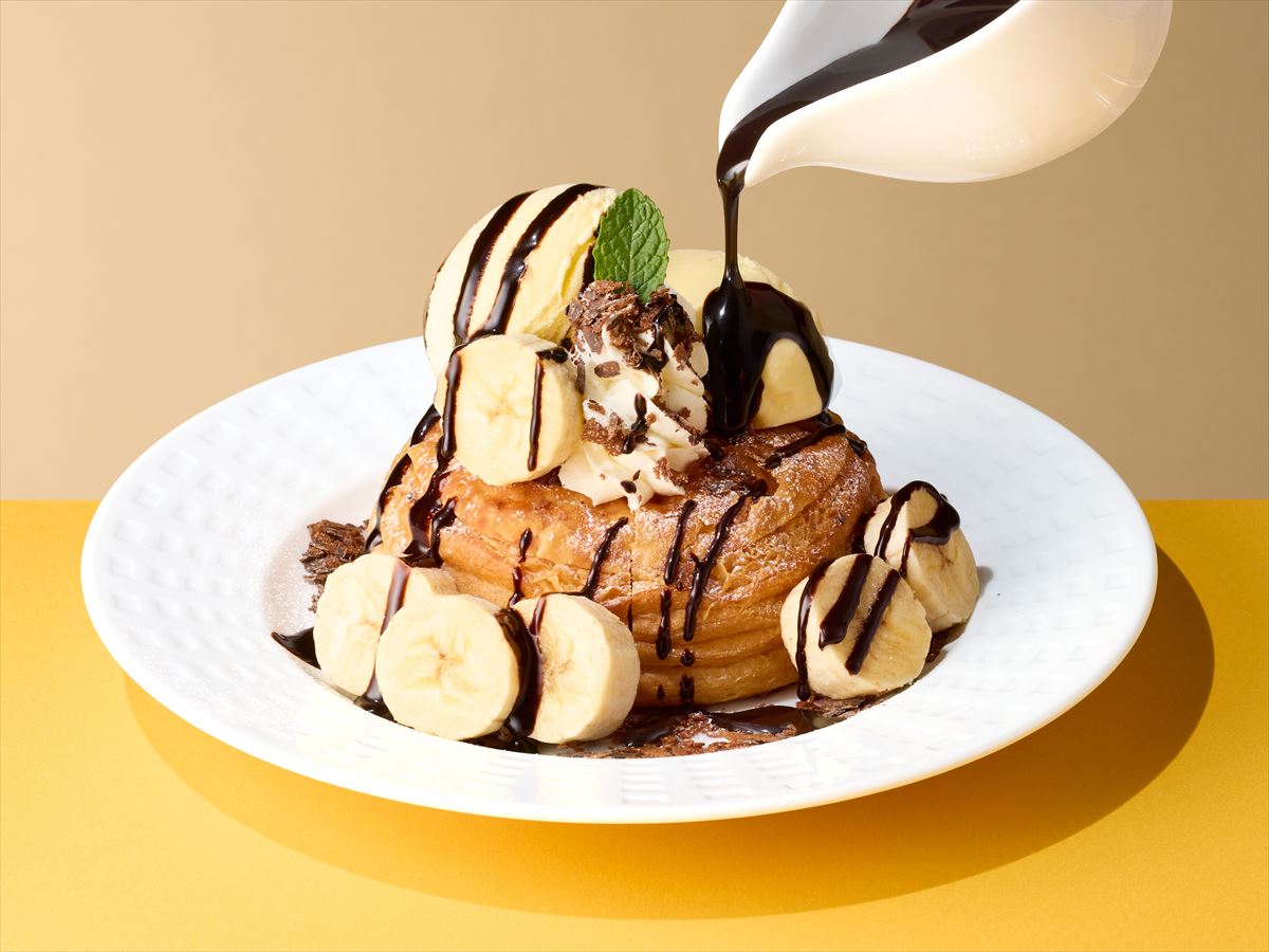 優しい甘さのバナナとバニラアイスに、濃厚なチョコソースが合わされば、まさに背徳的な味わい。サクサク生地のココッシュにトッピングやソースを絡めてご堪能ください。