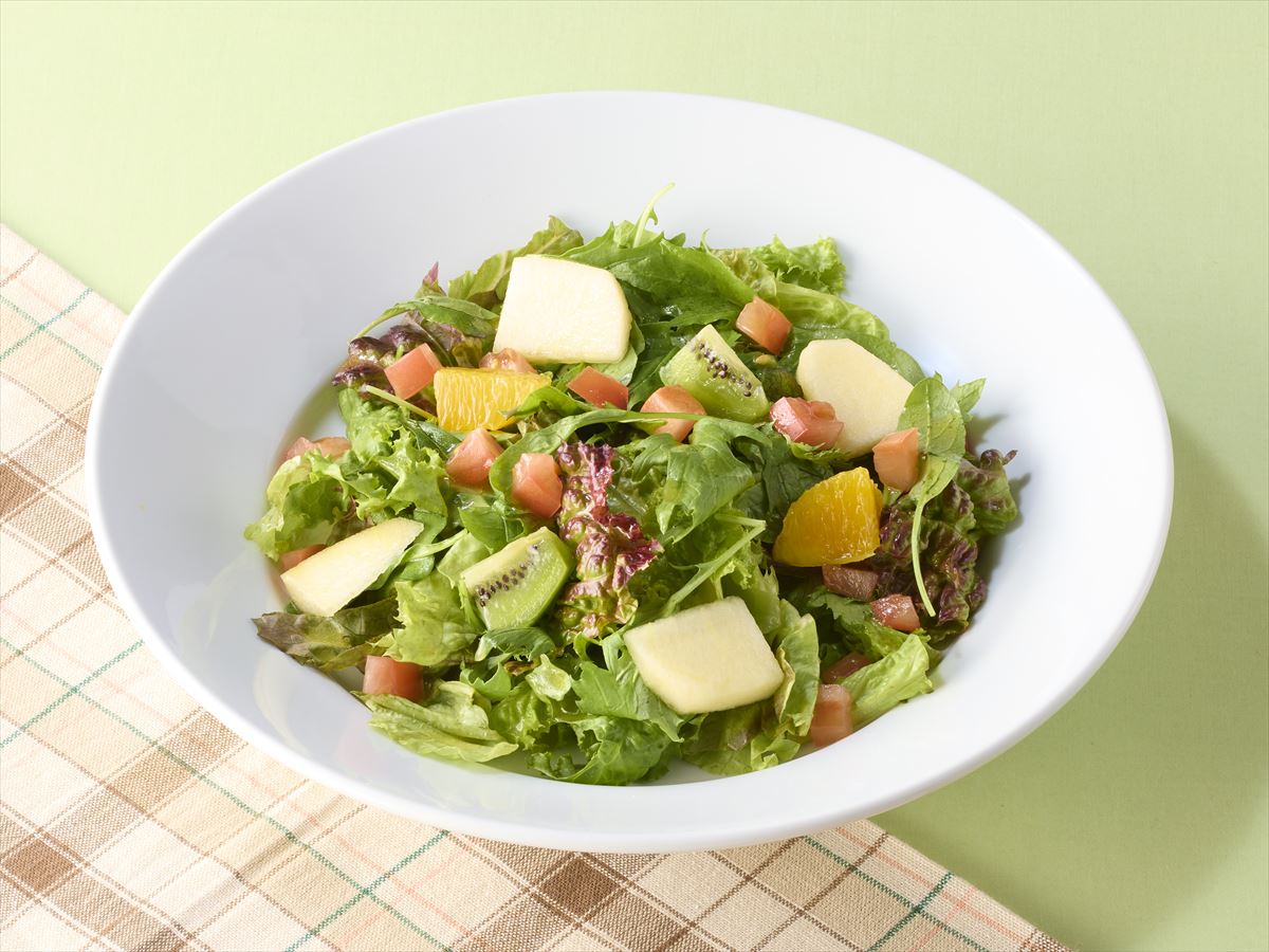 オリジナルのオレンジハニーソースがフルーツと野菜にぴったりマッチした新サラダを、ぜひお試しください。