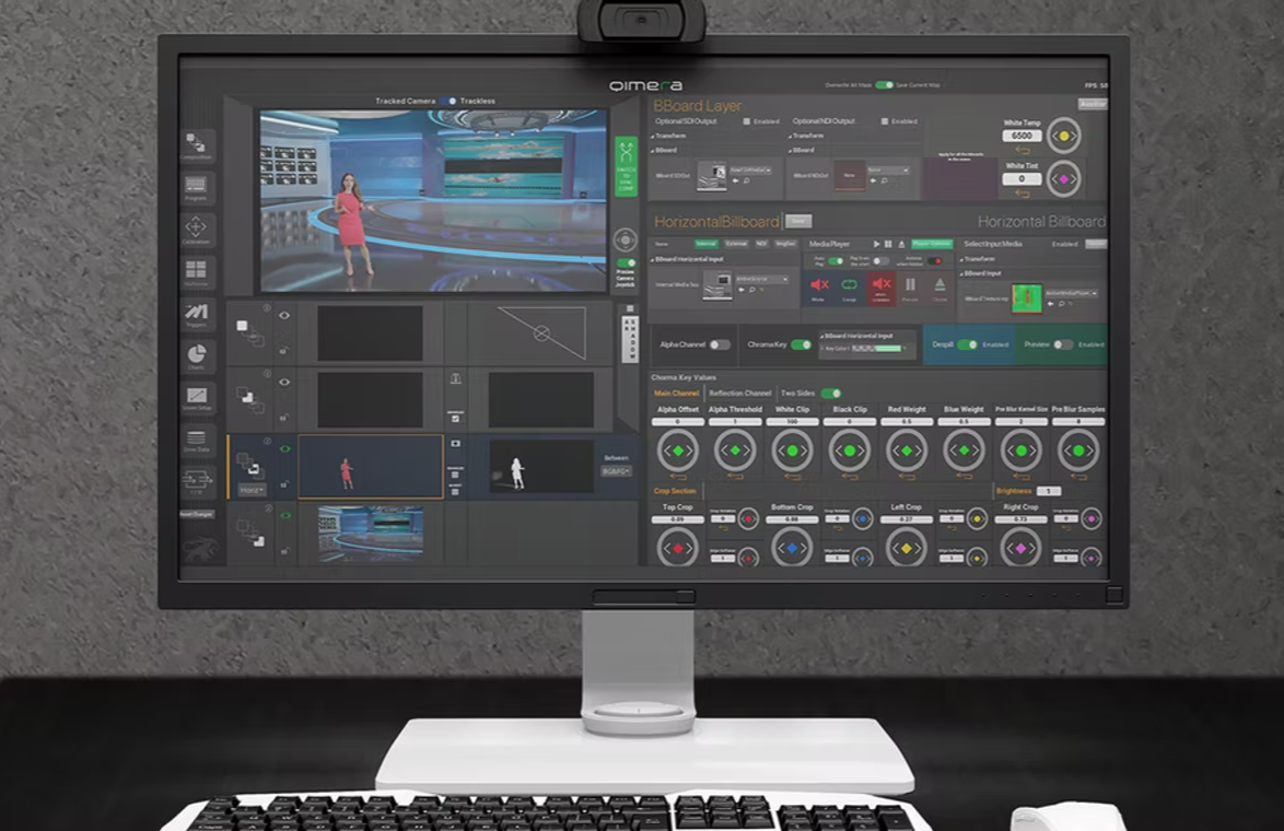 最先端のトラッキングエンジンであり、Unreal Engine v5.5 に対応。市場で最も先進的かつシンプルなオペレーションにより、バーチャルセットや拡張現実グラフィックスを容易に構築できます。「Qimera」は今日のダイナミックなテレビ制作ワークフローを念頭に開発・設計されており、直感的でわかりやすいユーザーインターフェイスを備えています。