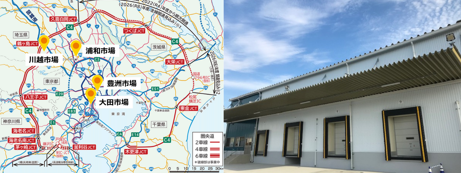 約600坪に増床された川越センターでは、加工・出荷機能が強化され、これまで以上に鮮度管理や顧客ニーズに対応することが可能になりました 。また、7月に開設した浦和センターとの連携により、集荷・出荷機能を最適化。仕入れ品目の大幅な拡大が可能となり、さらに横持ち運送費の削減や物流効率の向上によって事業全体のシナジー効果を高めます。これにより、関東・首都圏の青果物流網を再編し、持続的な成長と安定的な供給体制の確立を実現いたします。