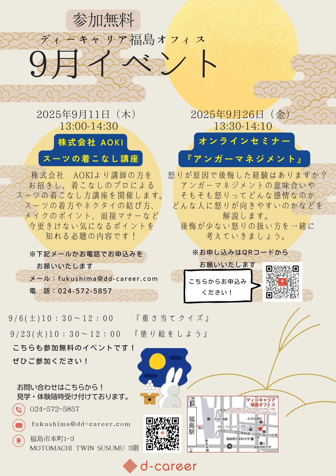 2025年9月【ディーキャリア福島オフィス】無料イベントのお知らせ