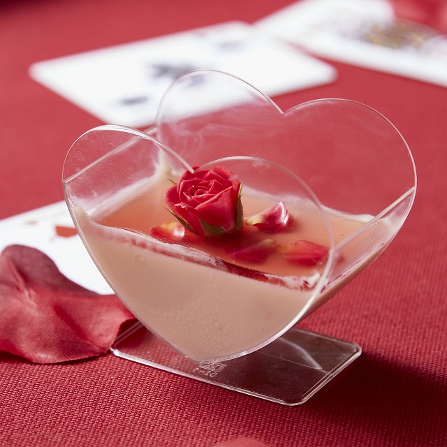 なめらかなくちどけのバニラブランマンジェにローズの香りが花開くように広がる。ハートの女王の理想とする美を体現した逸品