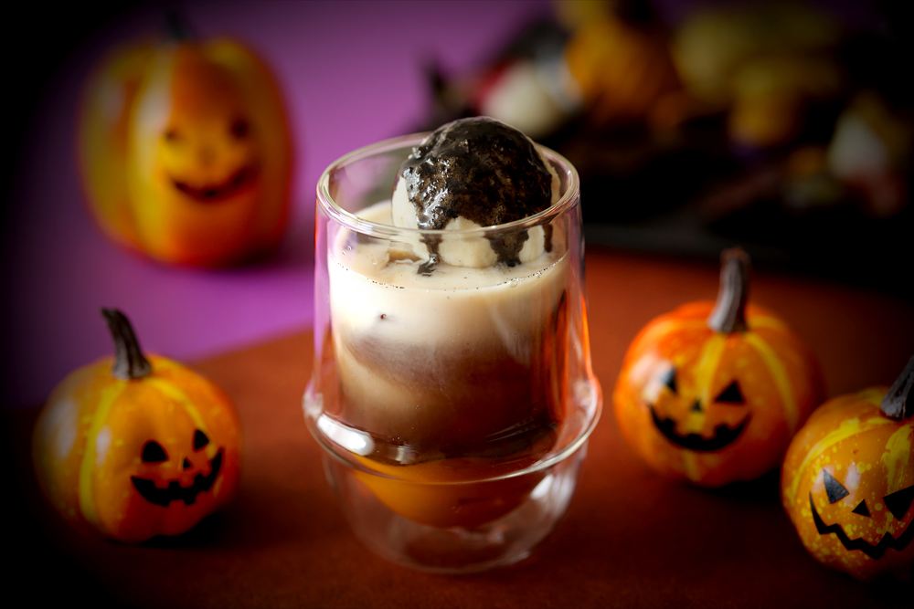 カボチャのペーストに、急須で淹れたほうじ茶を合わせたラテ。ラテの上にはジャージー牛乳と天然バニラビーンズを使った濃厚な味わいのバニラアイスを浮かべます。隠し味の蜂蜜と、仕上げにたっぷりかけた黒ゴマソースがアクセントのドリンク
