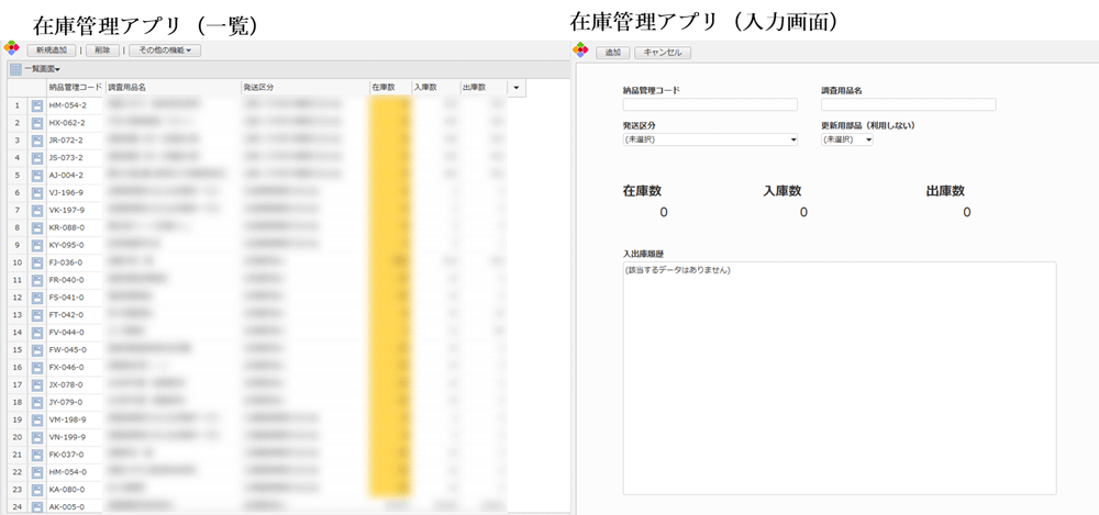 「在庫管理アプリ」は、国から届く国勢調査の調査用品を神奈川県統計センターで管理し、各市町村への入出庫を記録して、在庫履歴を管理することができます。また、在庫が少なくなると国への再申請が必要になるタイミングを把握することもできます。