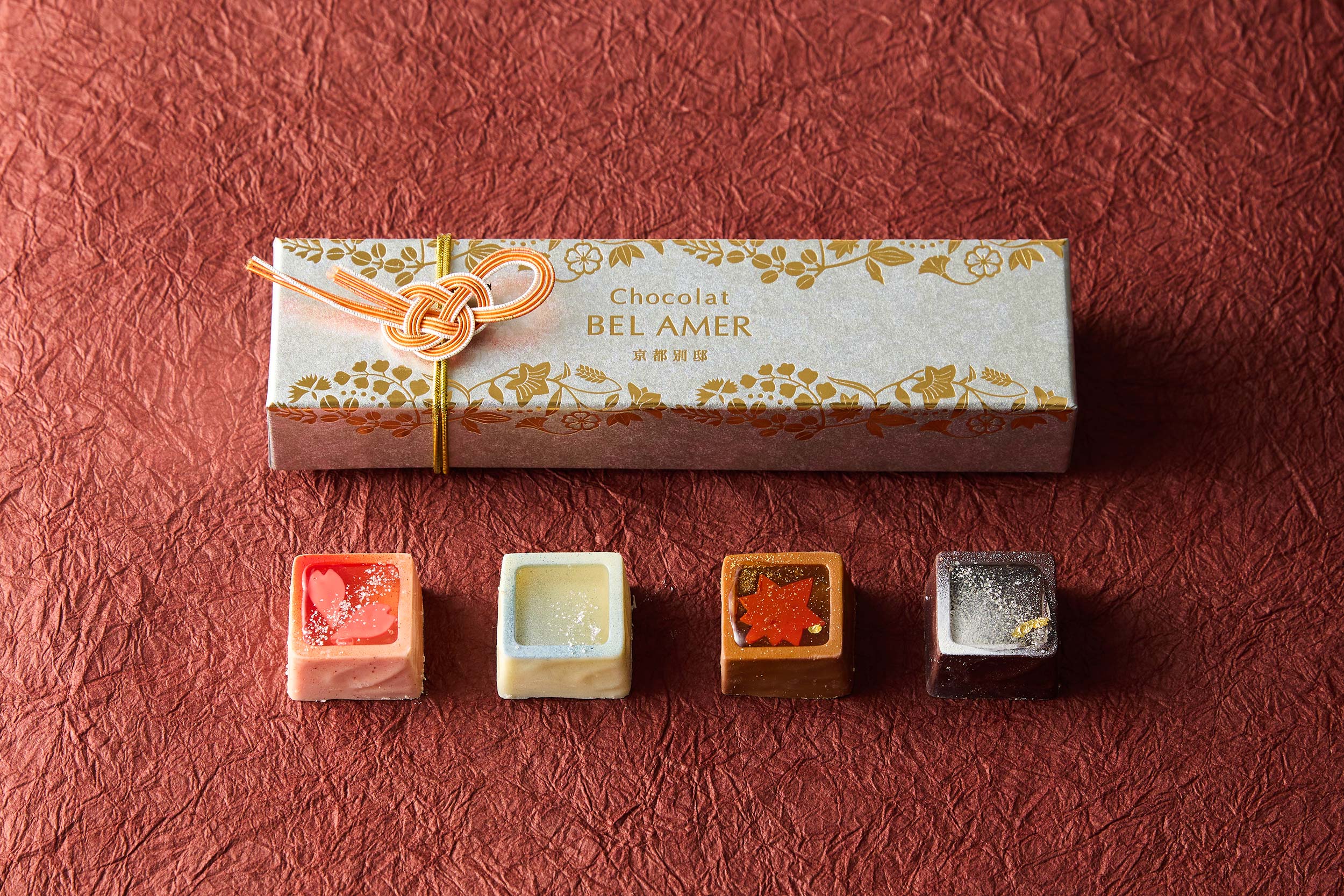 厳選した京都産の素材とカカオの芳醇な香りを丁寧に重ね、果実の瑞々しい酸味やお茶の奥深い旨みなど、それぞれ異なる風味・食感・彩りで“京都らしさ”を繊細に表現しています。