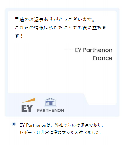 「早速のお返事ありがとうございます。これらの情報は私たちにとても役に立ちます!」