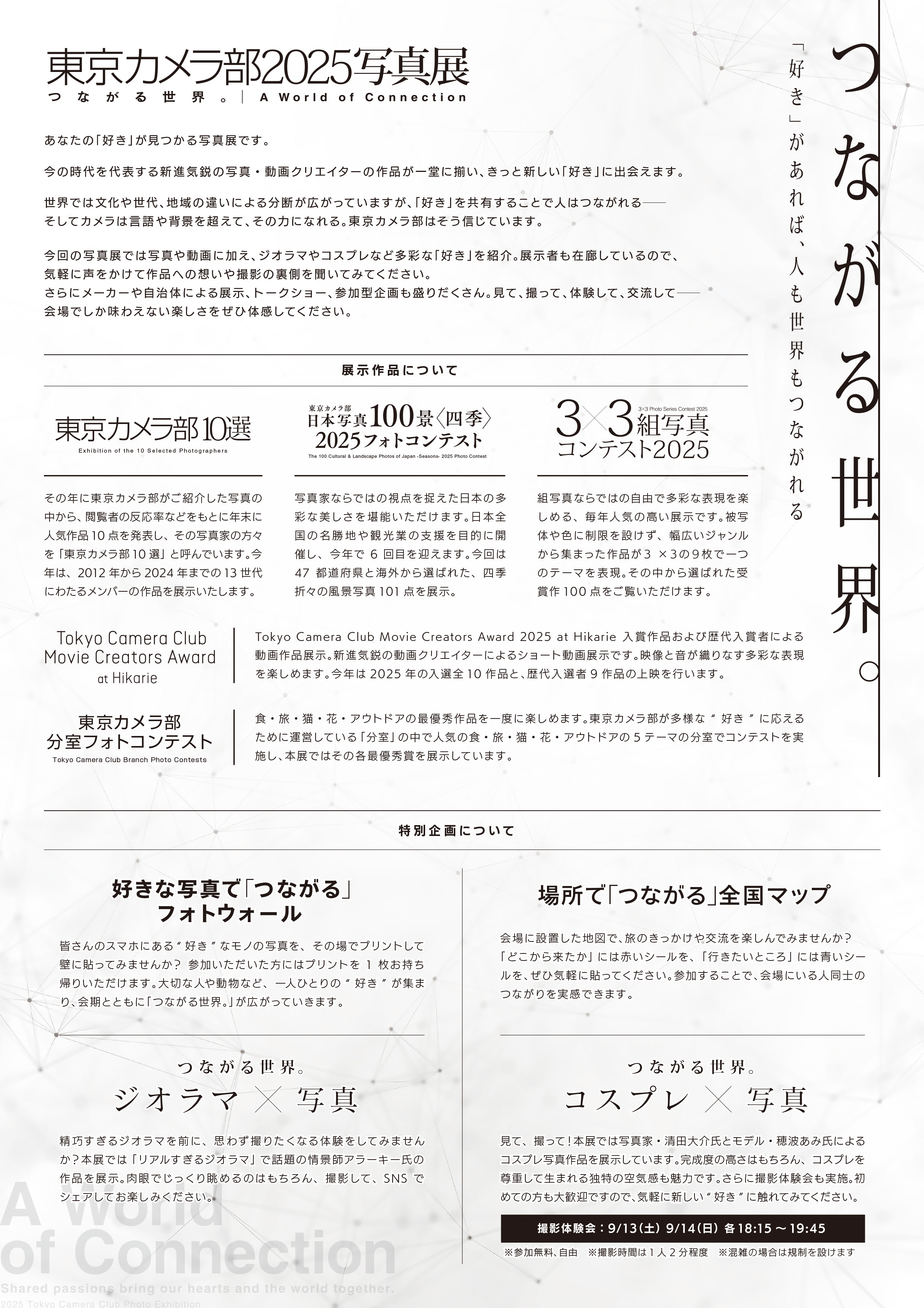 第13回となる今回は、「つながる世界。」をメインテーマに据え、写真を自己表現の道具として再定義しました。