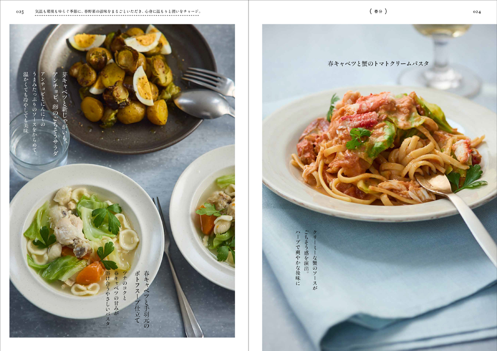 ひと皿で栄養バランスが整うので、子育てや介護、仕事で忙しい方にも実践しやすいのが魅力。シンプルな普段使いのパスタから、特別感を味わえるごちそうパスタまで、季節と心身の変化に寄り添った一冊です。