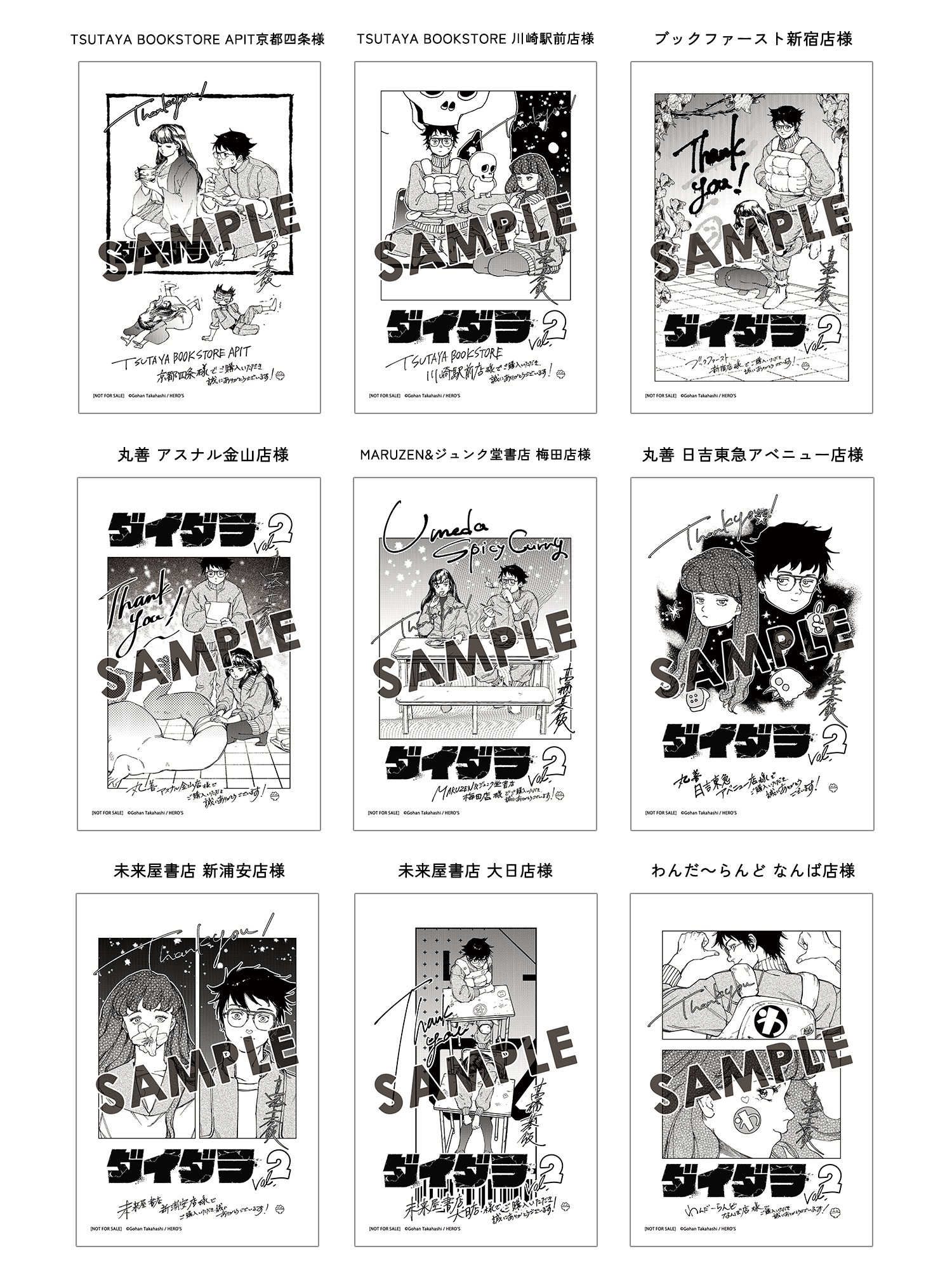 書泉ブックタワー様と書泉グランデ様にて「『ダイダラ』2巻発売記念フェア」を開催いたします。色紙や複製原画の展示、髙橋碁飯先生直筆サイン入り複製原画の抽選プレゼントに加え、購入特典として色紙イラストカードのご用意もございます。