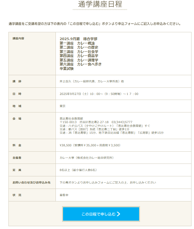★【お申込みはこちらから】 カレー大學HP https://www.currydaigaku.jp/