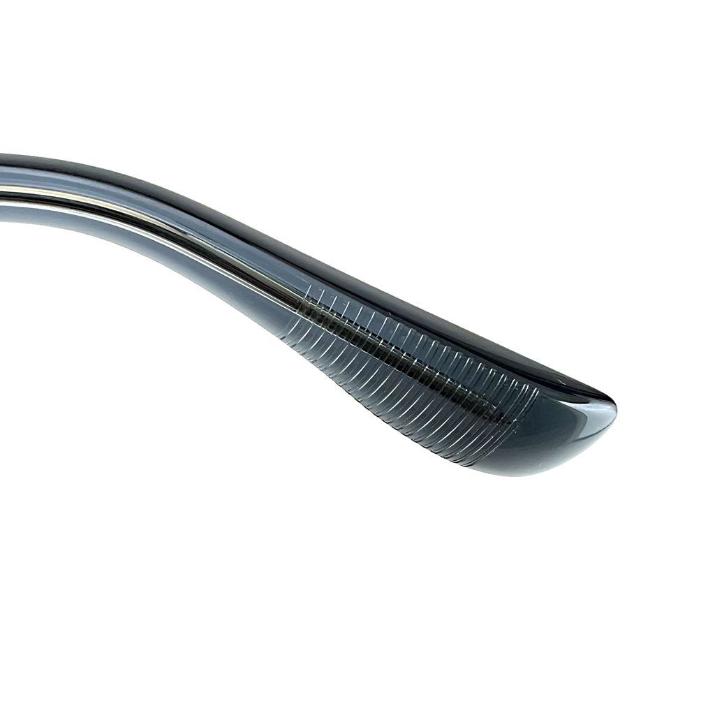 メガネの掛け外しで負荷がかかりやすい丁番には、軽量で高強度なβチタンのバネパーツを採用しています。これにより、重厚感のあるフレームでも締め付けを感じにくく、ストレスのない掛け心地を実現します。型崩れ防止にもつながり、見た目の美しさを長く保つことができます。