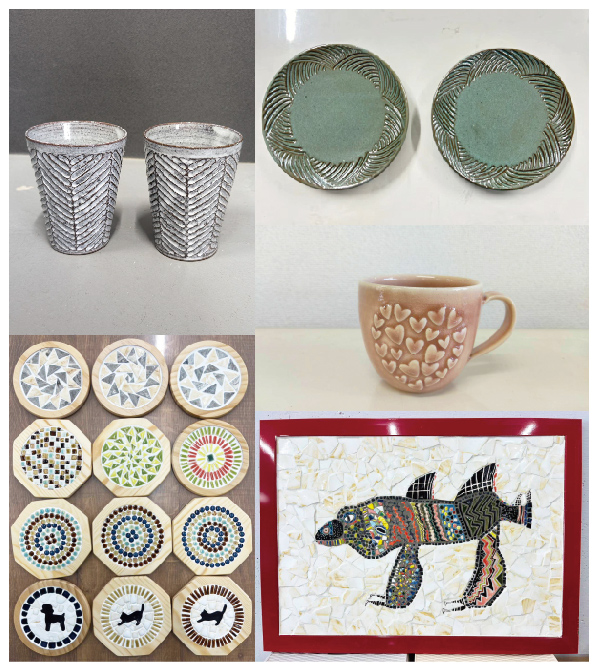 人気商品はプレートやマグカップ、次いでタイルモザイクのコースターです。コースターは量産ができず、制作してはすぐに