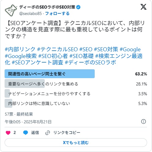 内部リンク構造を見直す際に最も重視されているのは、関連性の高いページ同士を結びつけることであることが明らかになりました。