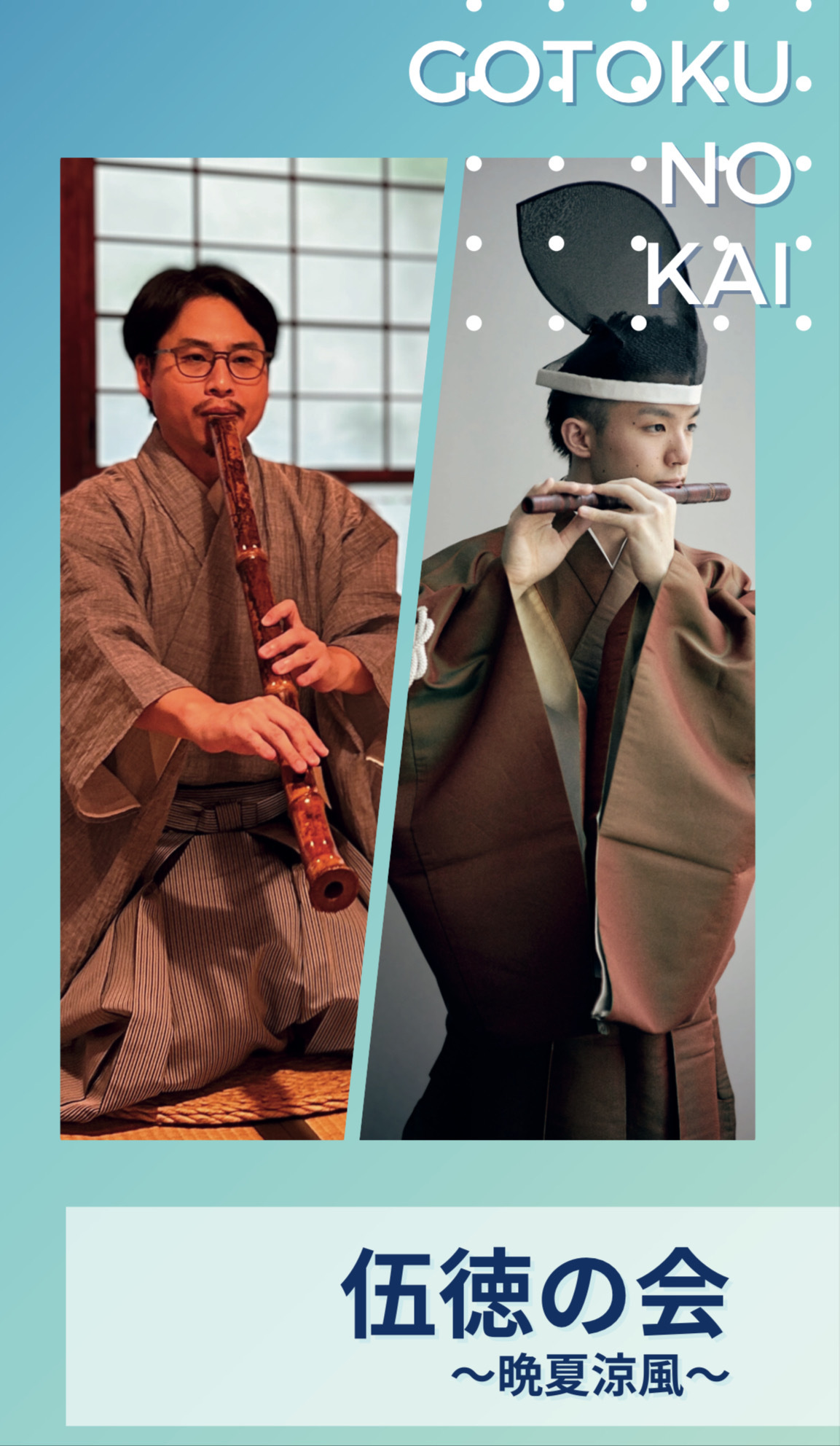生演奏ならではの生きた音が素晴らしく、また、龍笛の澄み渡る音が涼風を運び、晩夏にふさわしい会となり、大変ご好評を頂きました。