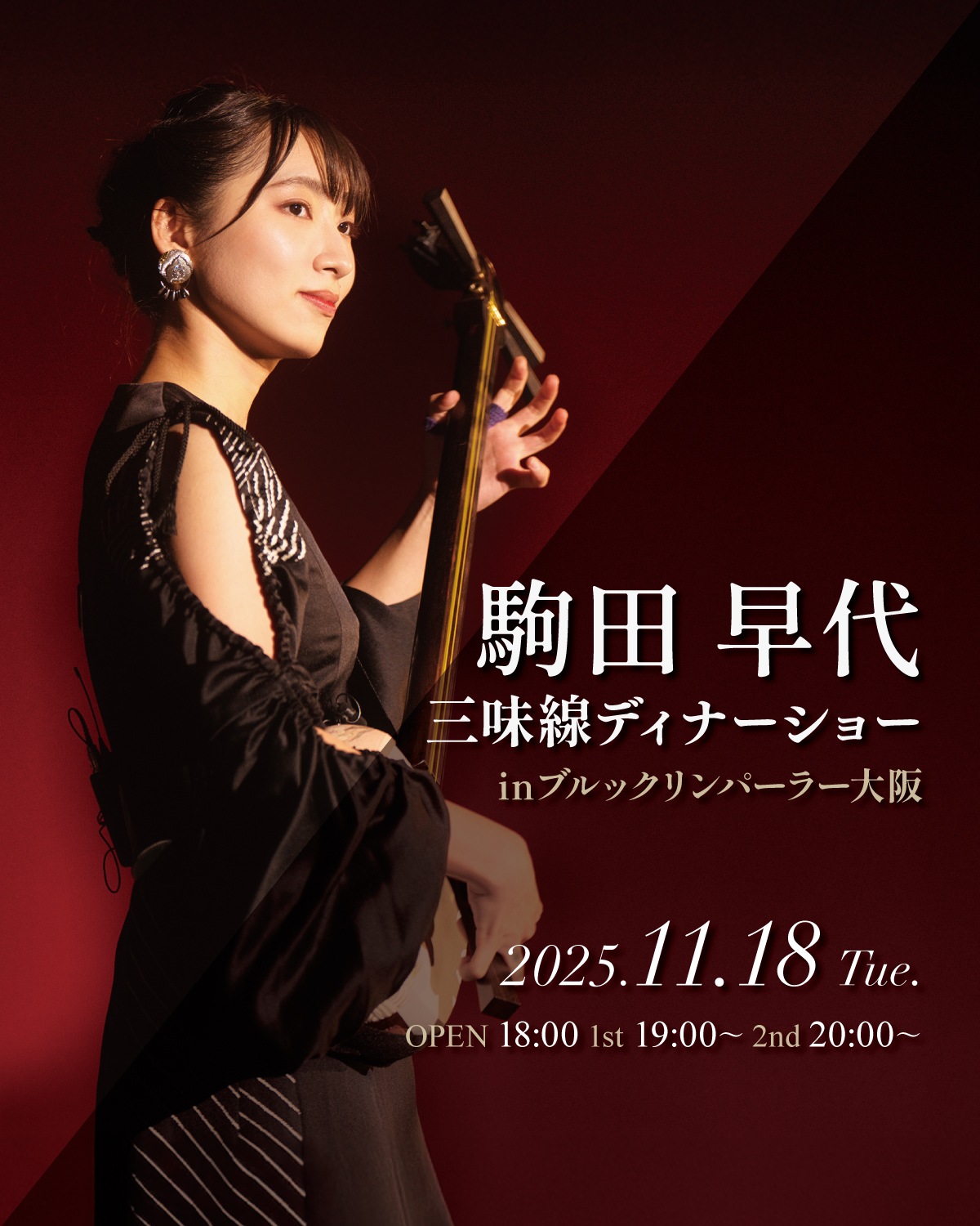2025年11月18日(火) Brooklyn Parlor Osakaにて「駒田早代 三味線ディナーショー inブルックリンパーラー大阪」開催!