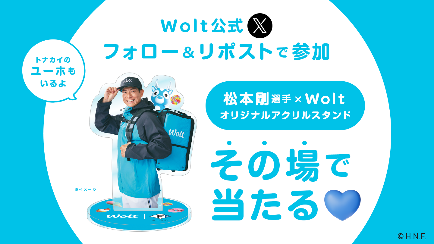 このほか、Woltの公式Xアカウントをフォローし、キャンペーン投稿をリポストしていただいた皆様の中から、抽選で30名様に「松本剛選手 Woltオリジナルアクリルスタンド(配達パートナー)」が当たるWolt公式Xプレゼントキャンペーンも実施しています。Woltの公式Xもぜひチェックしてみてください。