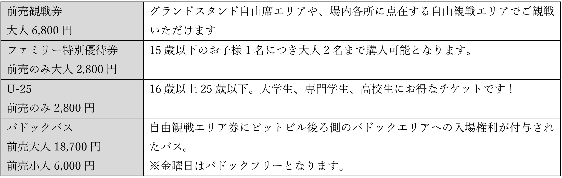 ・U-25(16歳から25歳のモータースポーツファン応援チケット)、他