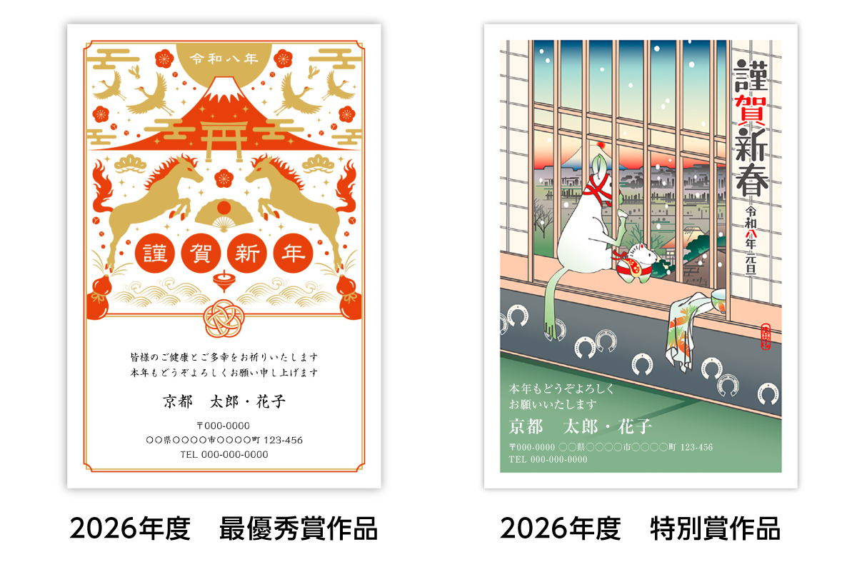 ▼年賀状デザイン公募詳細ページ:2026年デザイン公募・受賞作品
