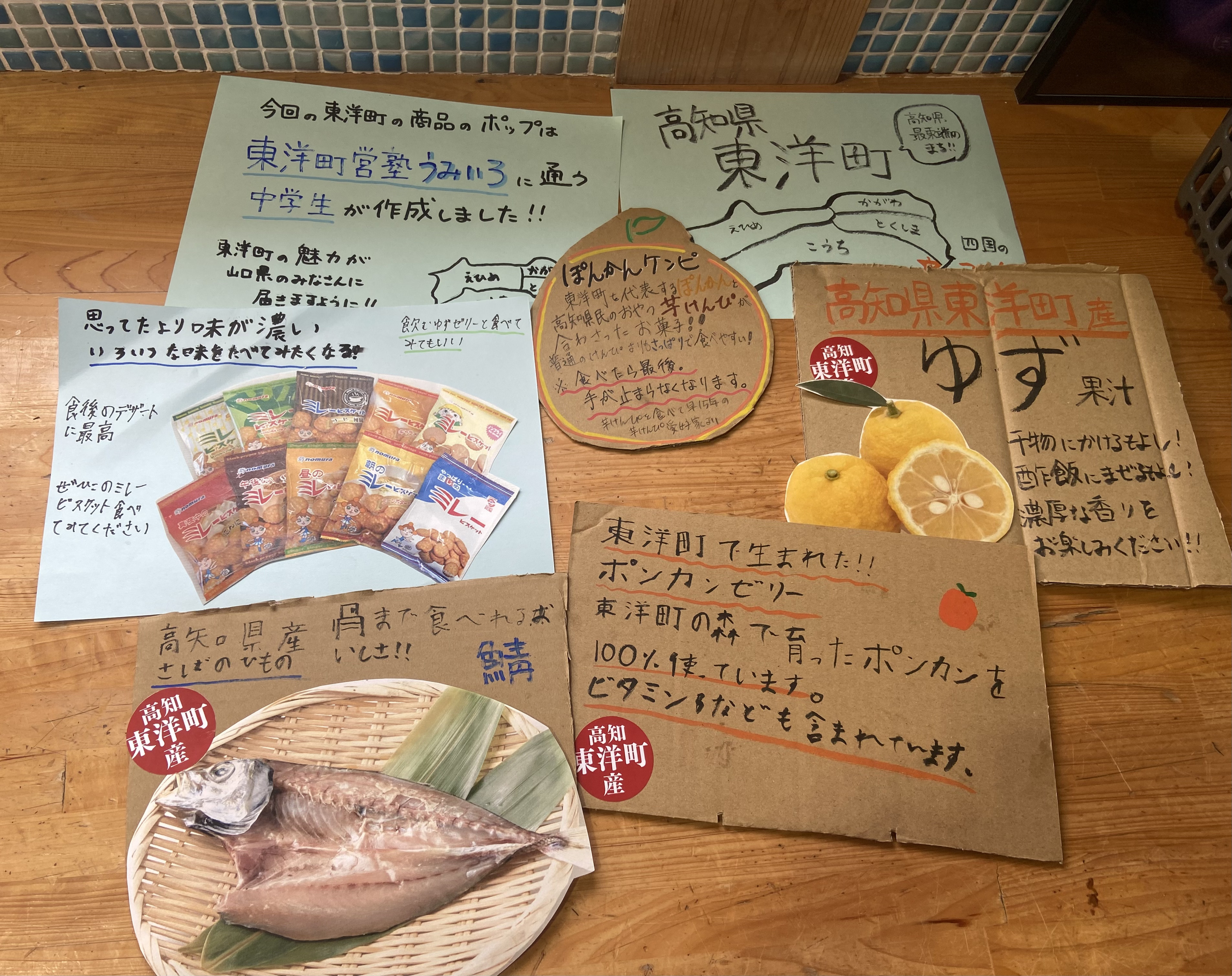 山口県美祢市と高知県東洋町の公営塾に通う中学生がお互いの地域産品のPOPの作成から販売まで行いました。