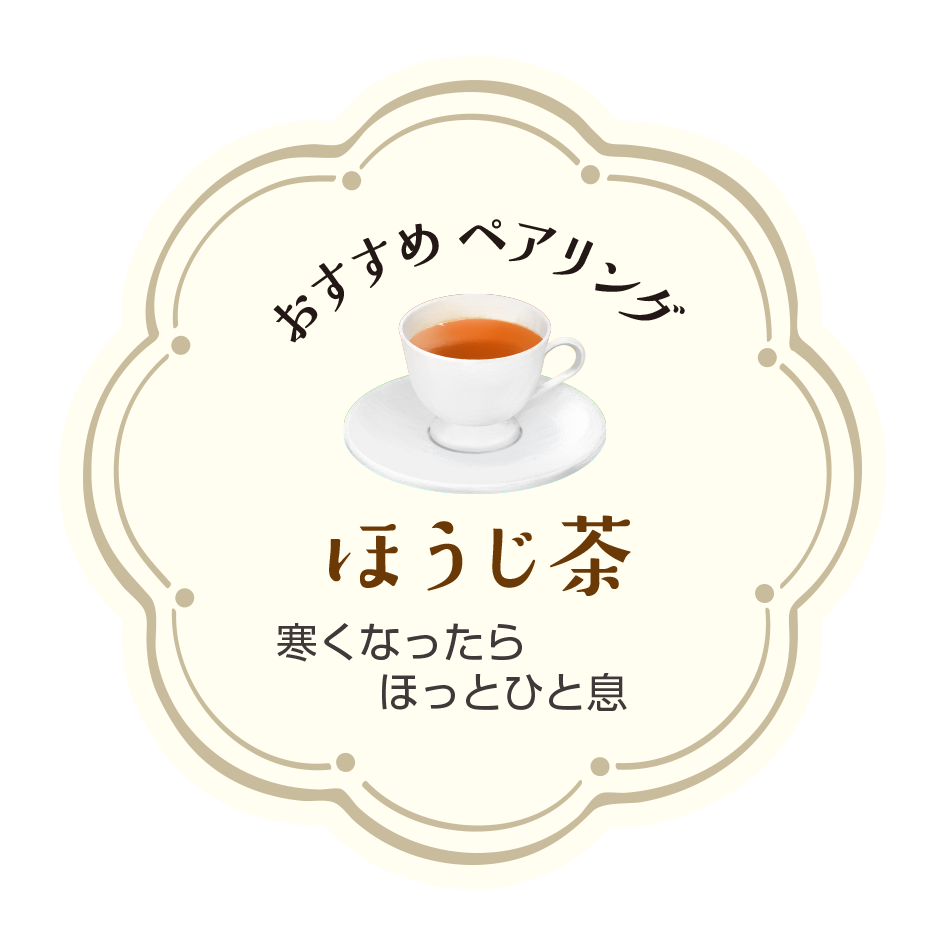 ほっとひと息つくのにぴったりな、ほうじ茶とのペアリングがおすすめです。