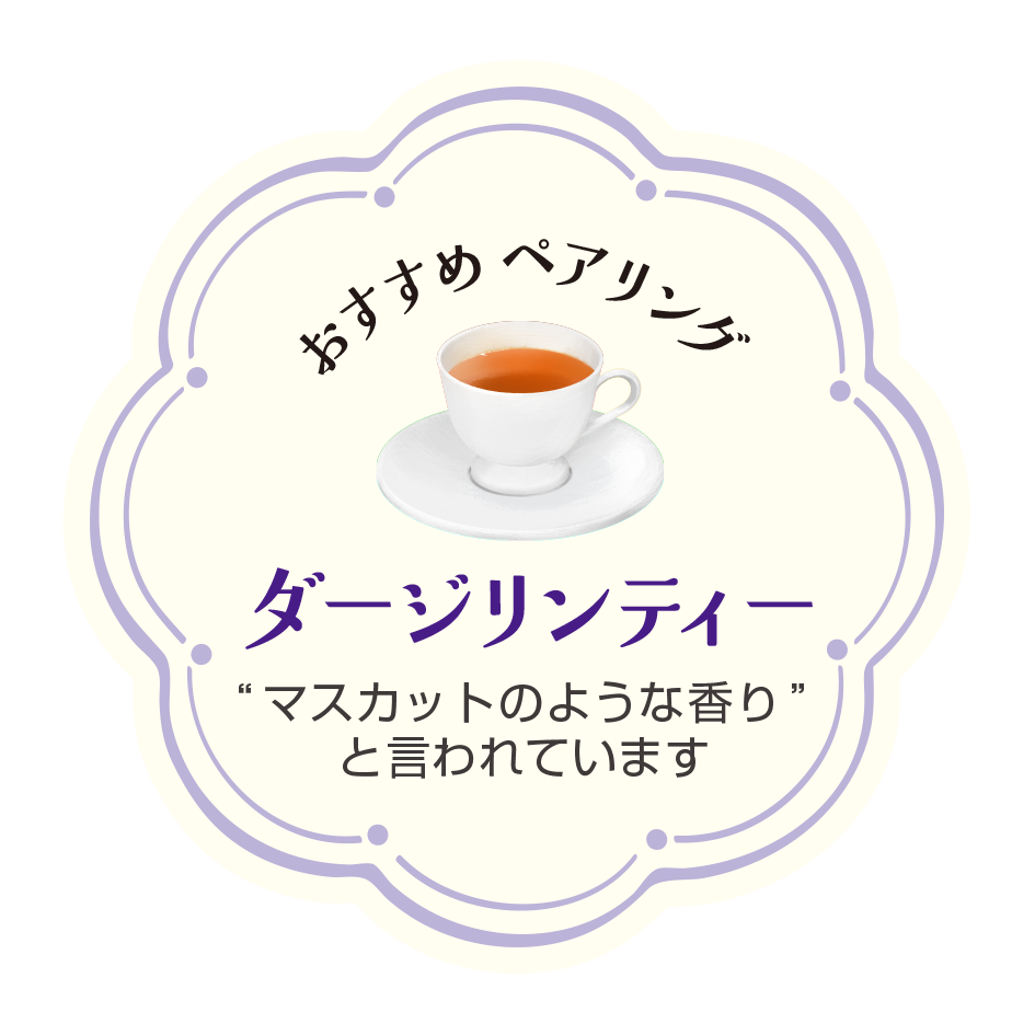マスカットのような香りともいわれる、香り高いダージリンティーとのペアリングがおすすめです。