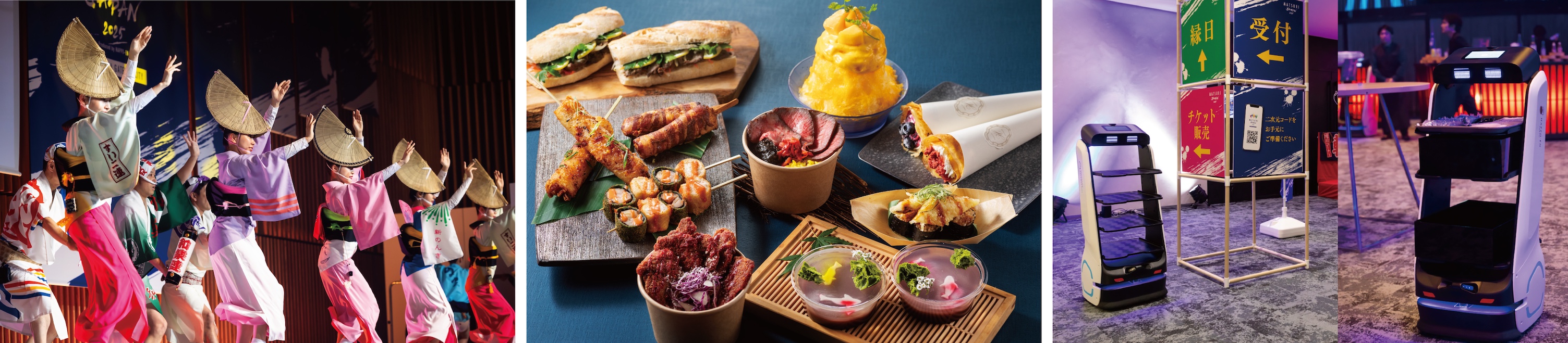 6月28日(土)・29日(日)の2日間、出演している祭りパフォーマーの地域を中⼼とした⾷材や⾷⽂化を中⼼に、八芳園シェフが”祭り”をテーマにアレンジした新しい郷⼟料理も提供。各地の自治体や文化団体との連携のもと、日本の「まつり文化」を高輪エリアから再発見・再体験する機会を創出しました。