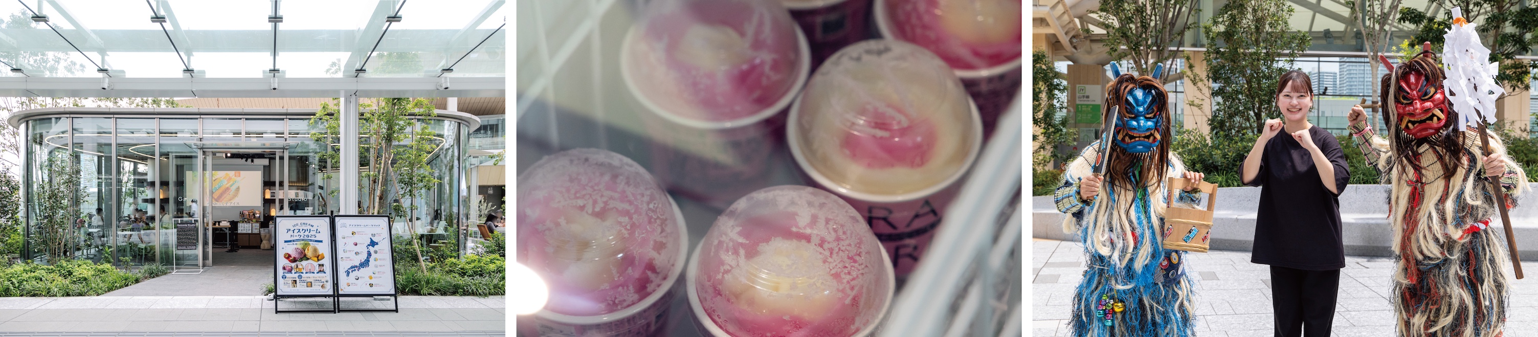 8月8日(金)から11日(月・祝)の4日間、一般社団法人高輪ゲートウェイエリアマネジメント主催のもと、各地のこだわりアイスやクラフトビール、ご当地サイダーが集結し、都心で楽しめる“涼と味覚”の体験をプロデュース。ほかにも、秋田県男鹿半島に伝わる民族行事“ナマハゲ”の登場や、越前和紙を使用した“和紙あかり”作りなど、地域の文化に触れる体験コンテンツをプロデュース。
