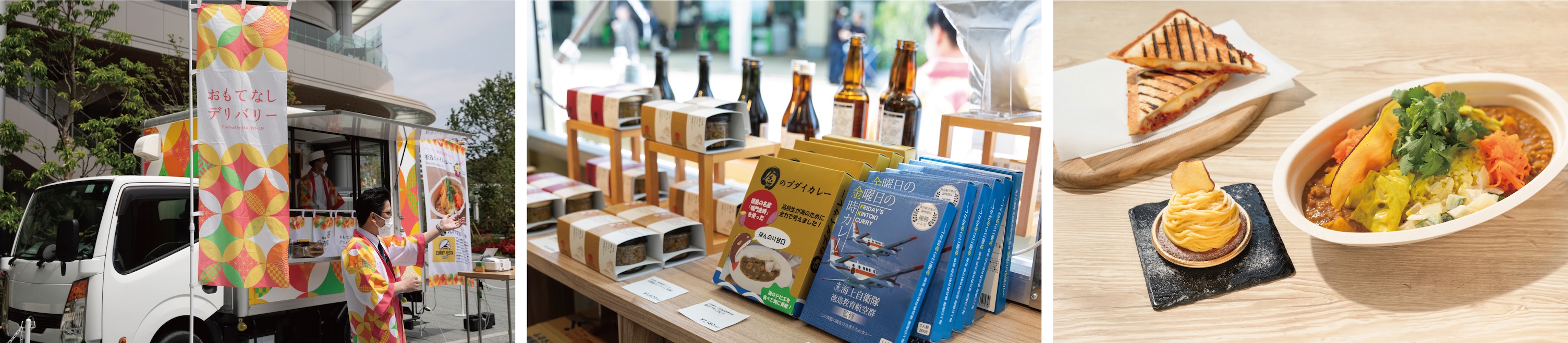 【1】全国各地の自治体とコラボレーションし、2週間ごとに切り替わるフードトラック・トレーラーショップを展開した「おもてなしデリバリー by HAPPO-EN」