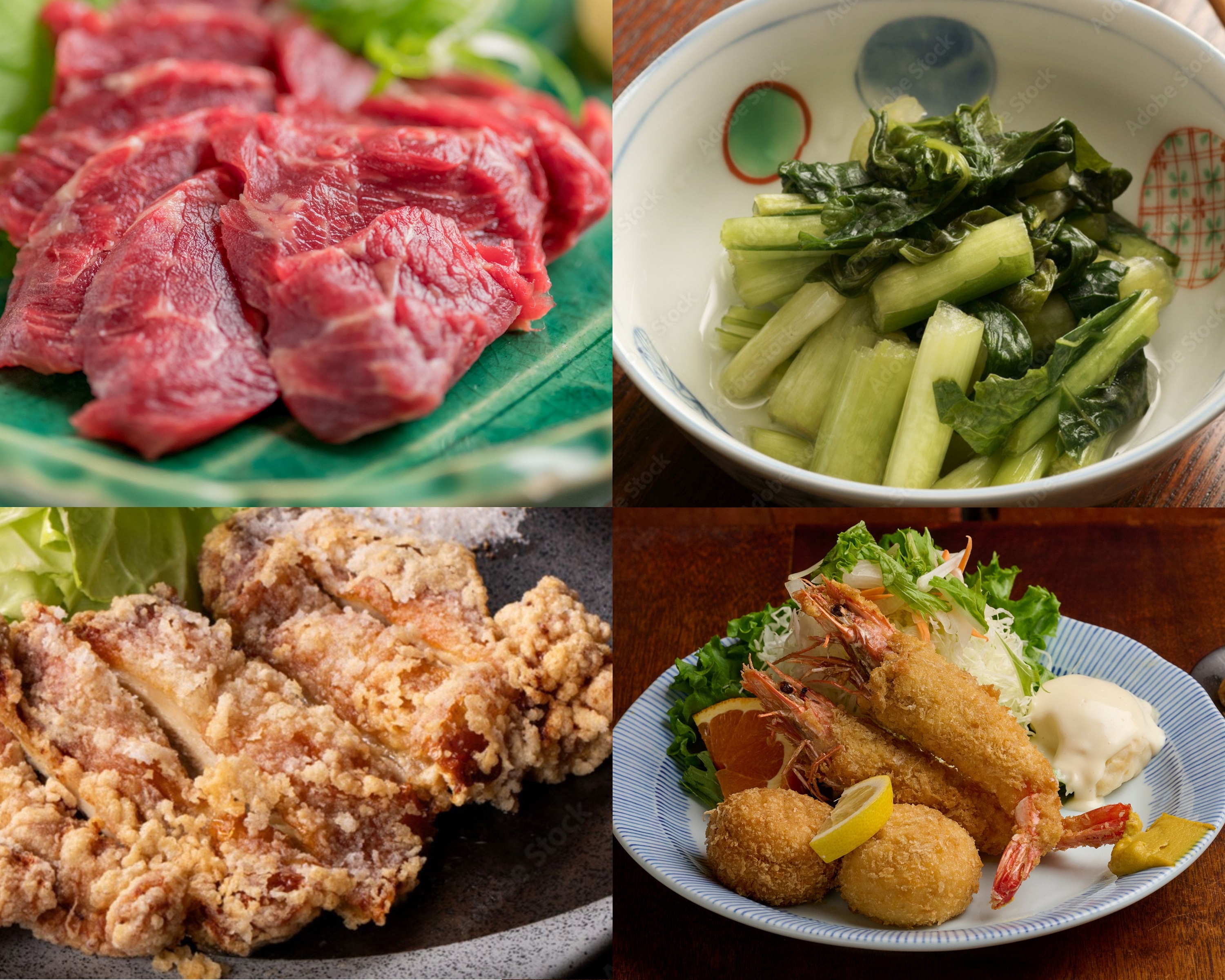 左上:馬刺し 880円/右上:野沢菜浅漬け 330円