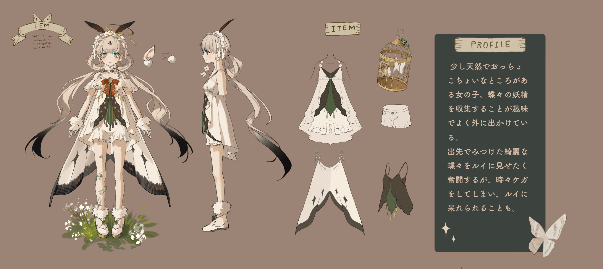 蝶々を捕まえてルイに見せるのが好き。